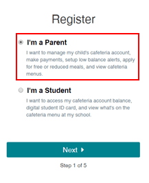 To create a parent account, click on the School Cafe logo, after reading the following instructions: