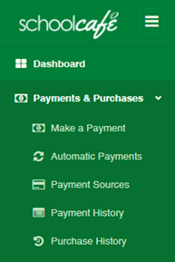 11) Select “Payments & Purchases” to make a payment, set up automatic payments, manage payment sources, and view purchase history: